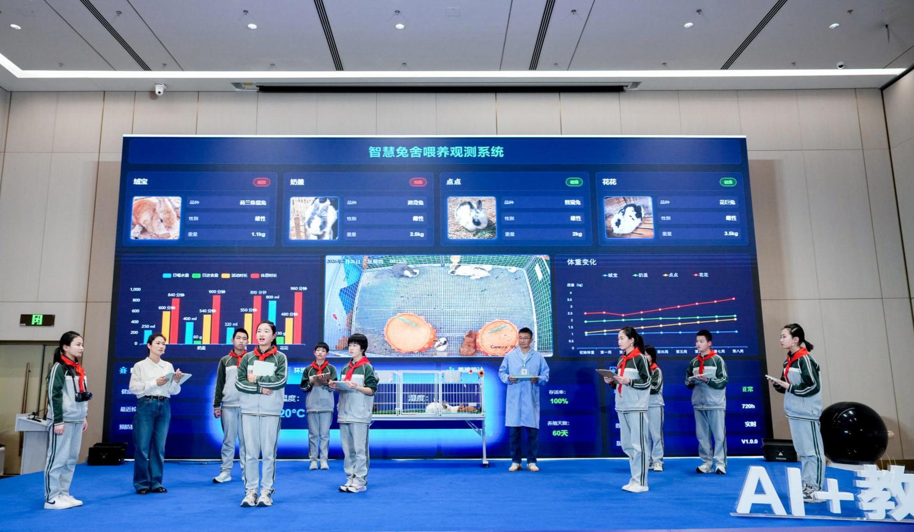 记者了解到,“小悟空空间站”里,课堂不再是“千人一面”的教学模式。在语文课堂上,智能助教为《天净沙・秋思》的学习打造了多元入口,学生可根据自身兴趣与认知节奏,自主选择学习路径。AI会根据学生的兴趣点实时推送学习资源,并支持跨学科学习、为原创作品生成意境图,让学生的创意真正落地。课堂之外,AI也让学生在真实场景探究中,体会科技的价值与温度。比如,“小悟空”们化身饲养员,借助AI拍照识别、智能监测系统,为小动物搭建健康档案,甚至创新推出兔体质指数(RBMI),实现跨品种健康评估标准化。
